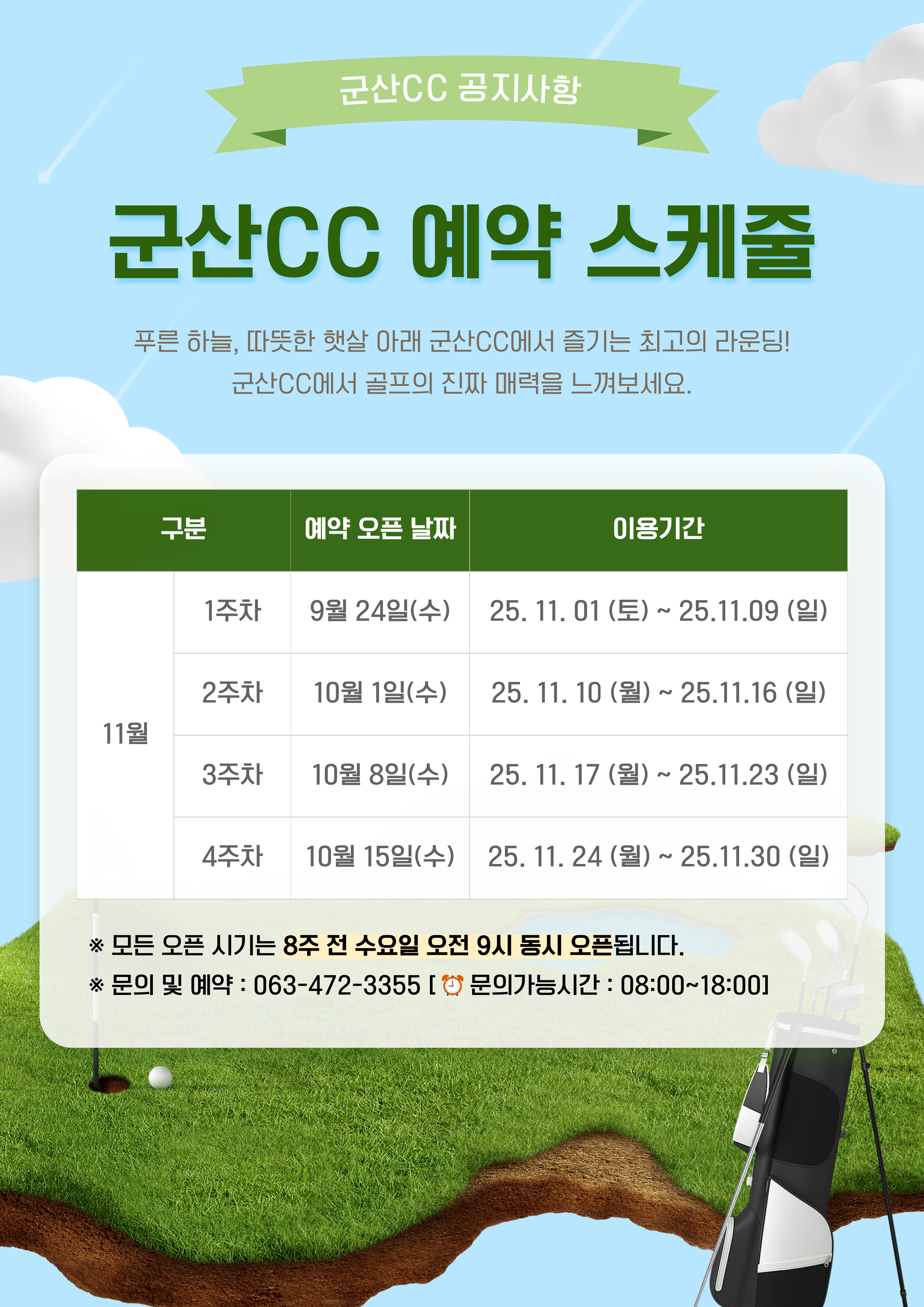 [공지사항] 2025년 11월 예약스케줄 안내사항