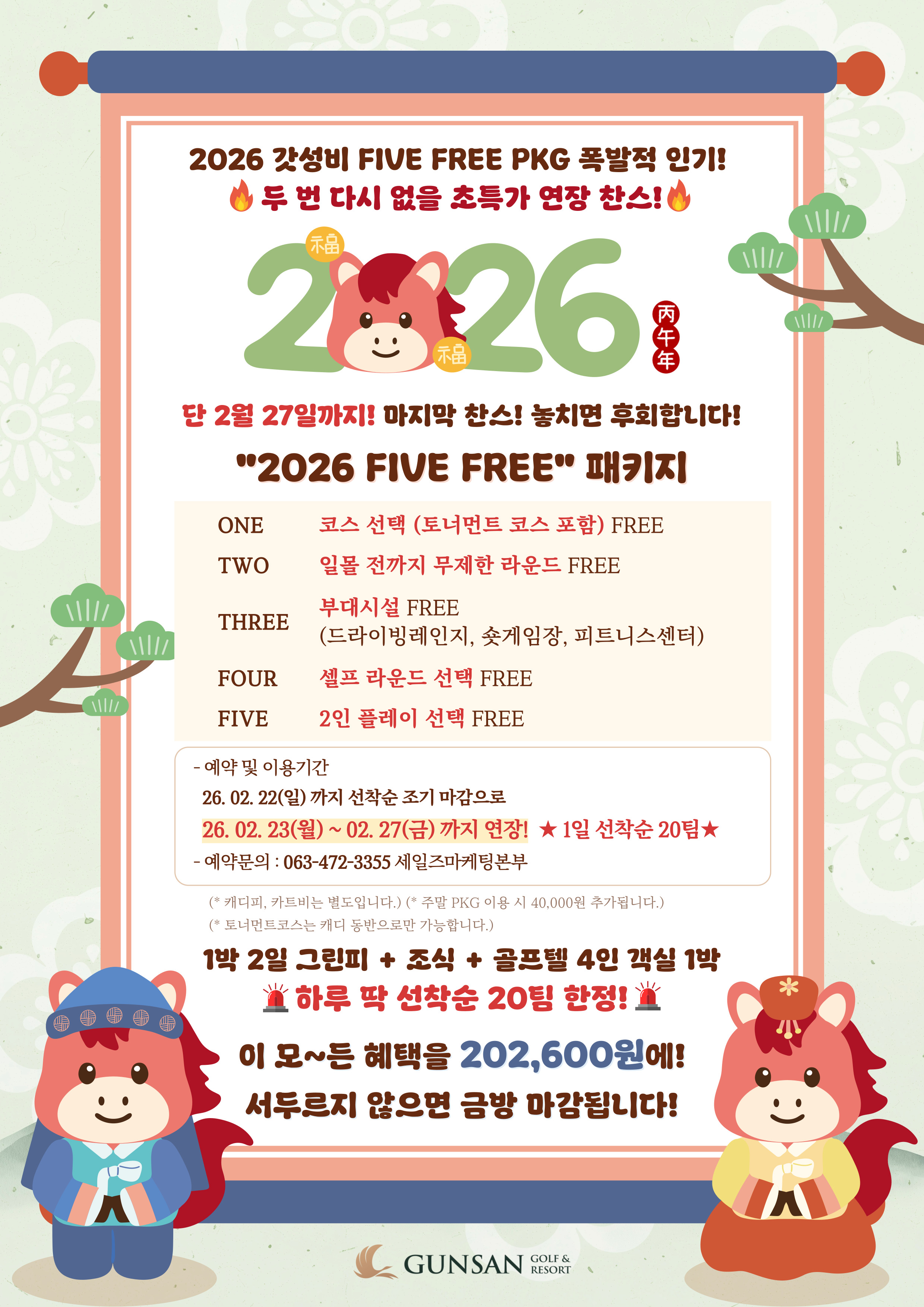 [공지사항] 2026 갓성비 FIVE FREE 패키지 마지막 연장 오픈!