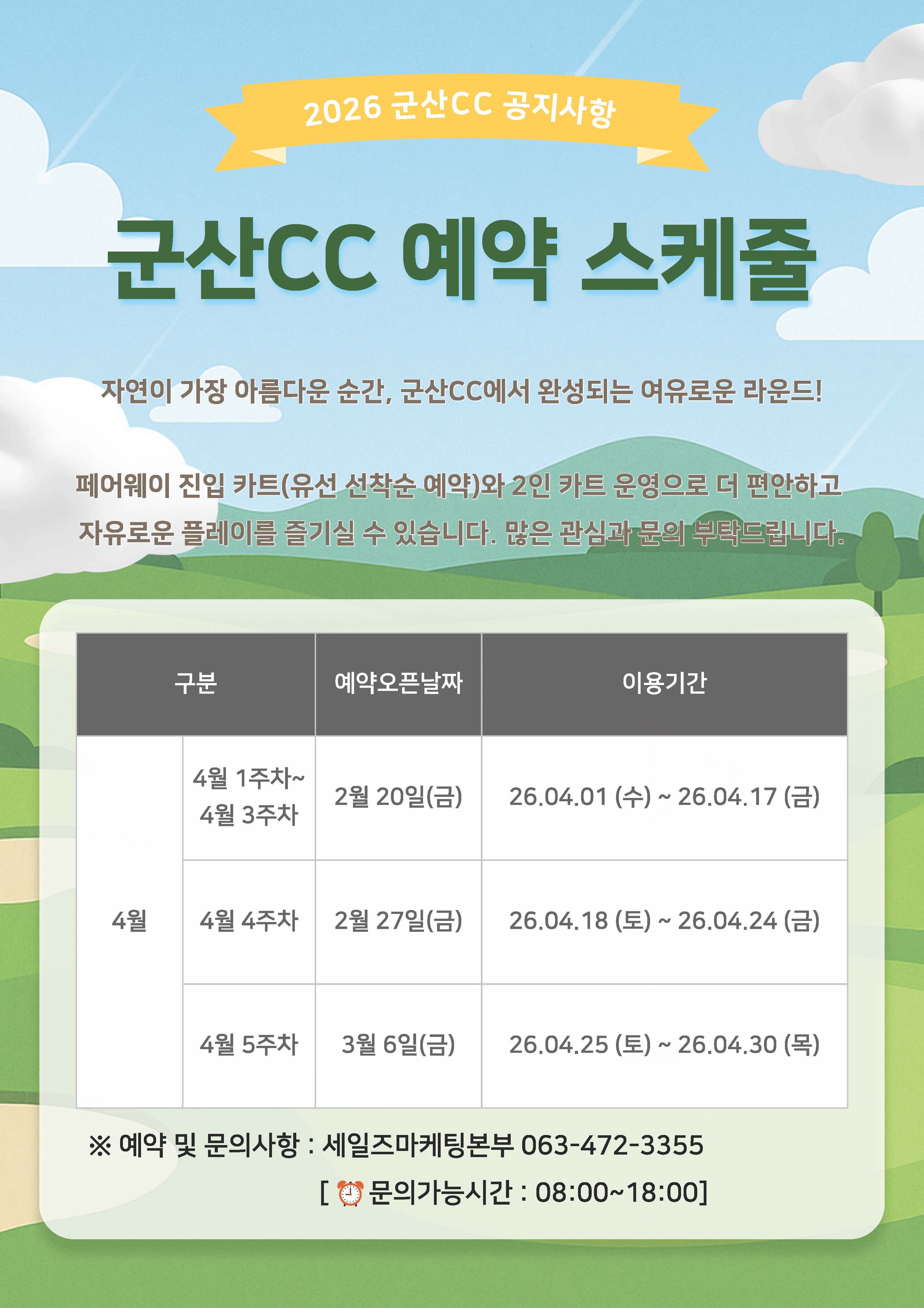 [공지사항] [공지사항] 2026 군산CC 예약스케줄 (4월)
