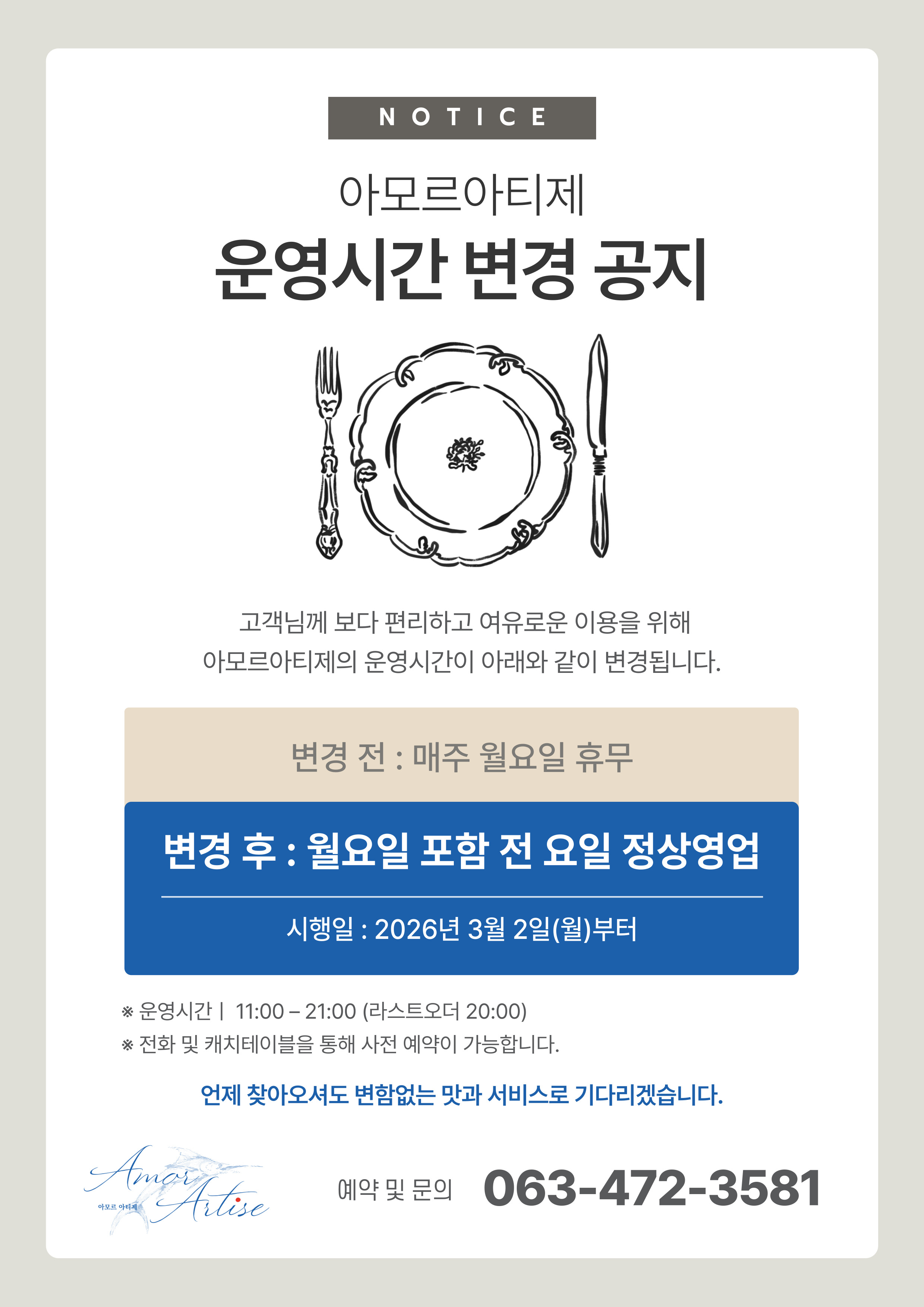 [공지사항] 군산CC 아모르아티제 3월 정상영업 안내
