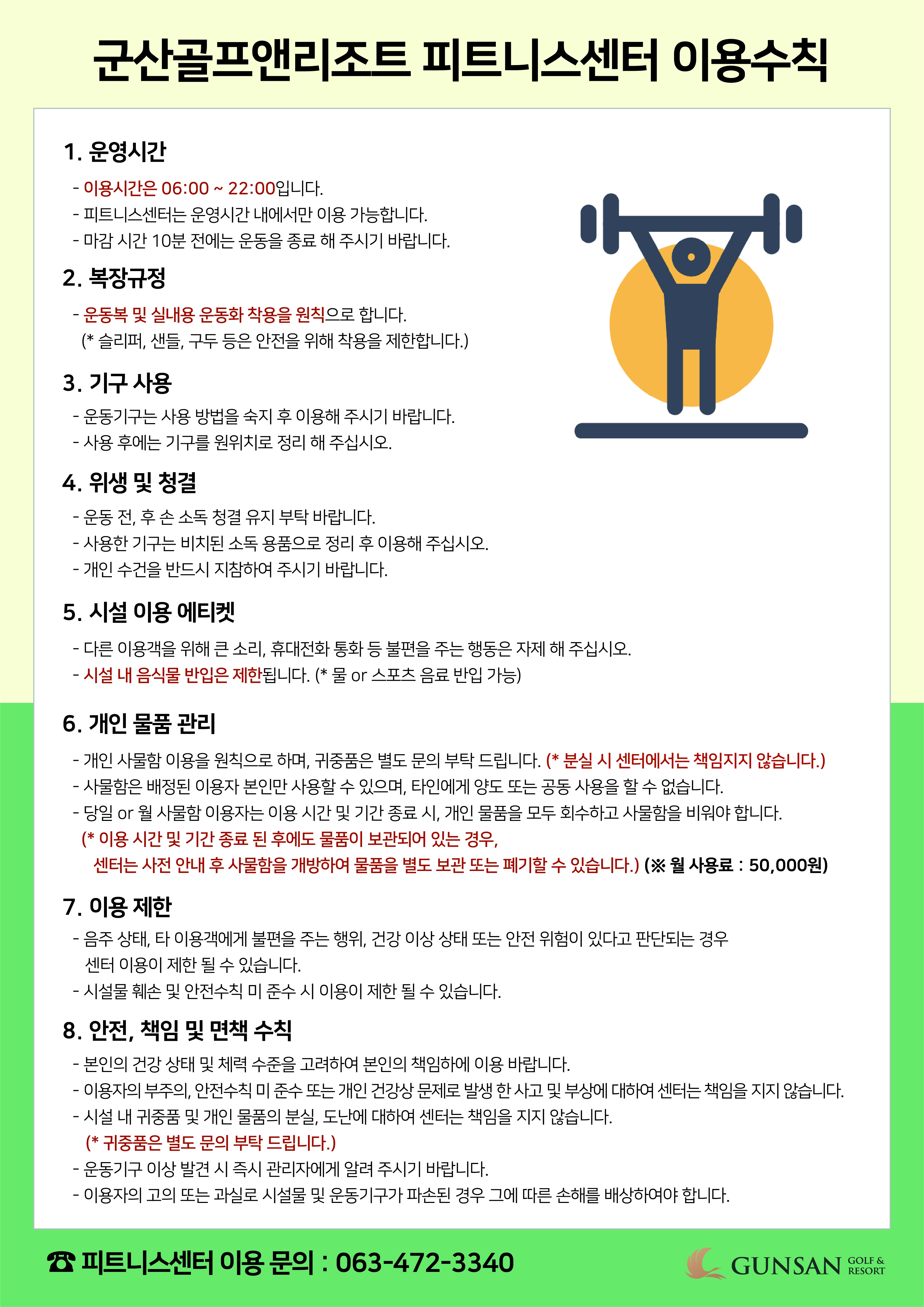 [공지사항] 군산골프앤리조트 피트니스센터 이용수칙