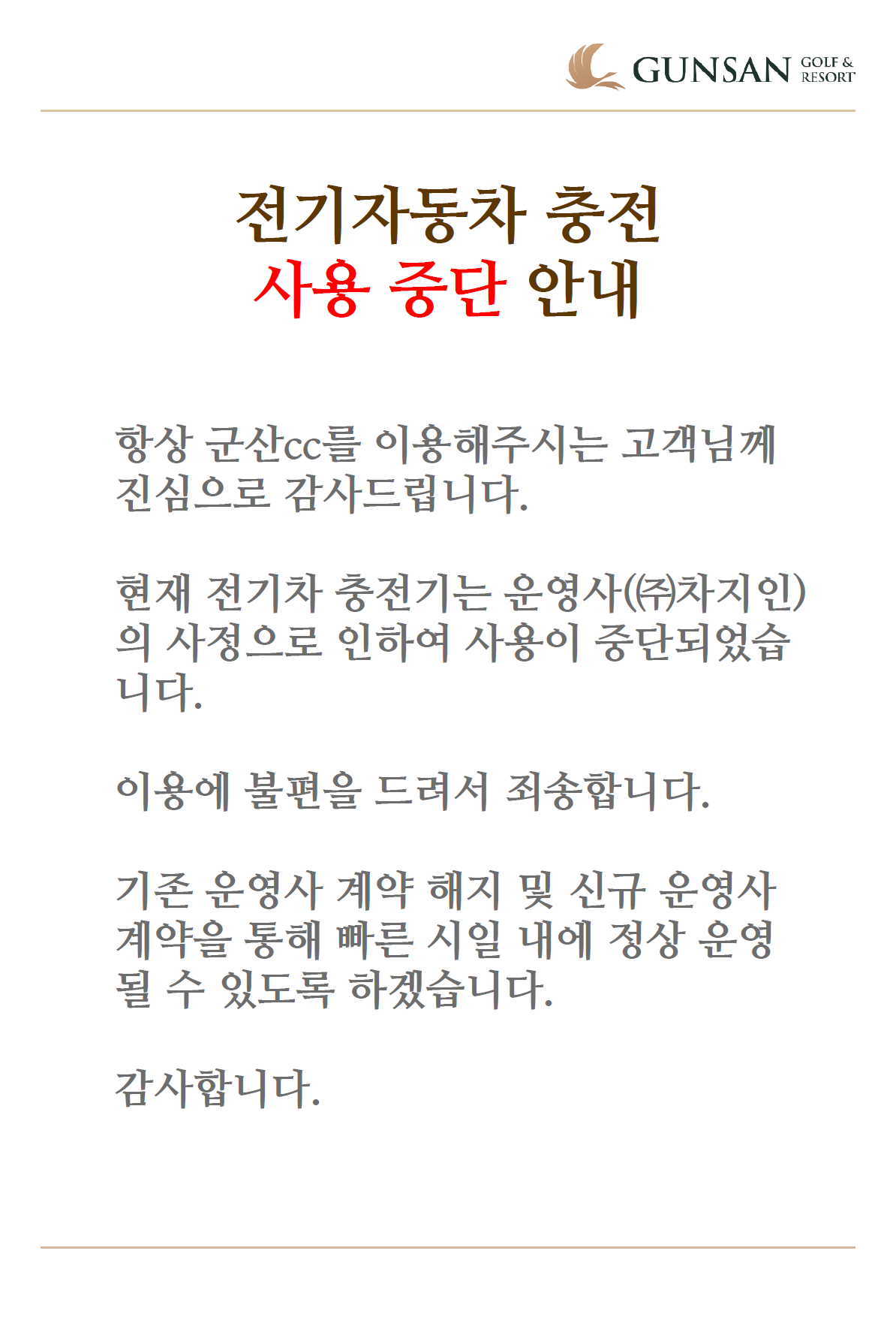 [공지사항] 군산CC 전기자동차 사용 중단 안내
