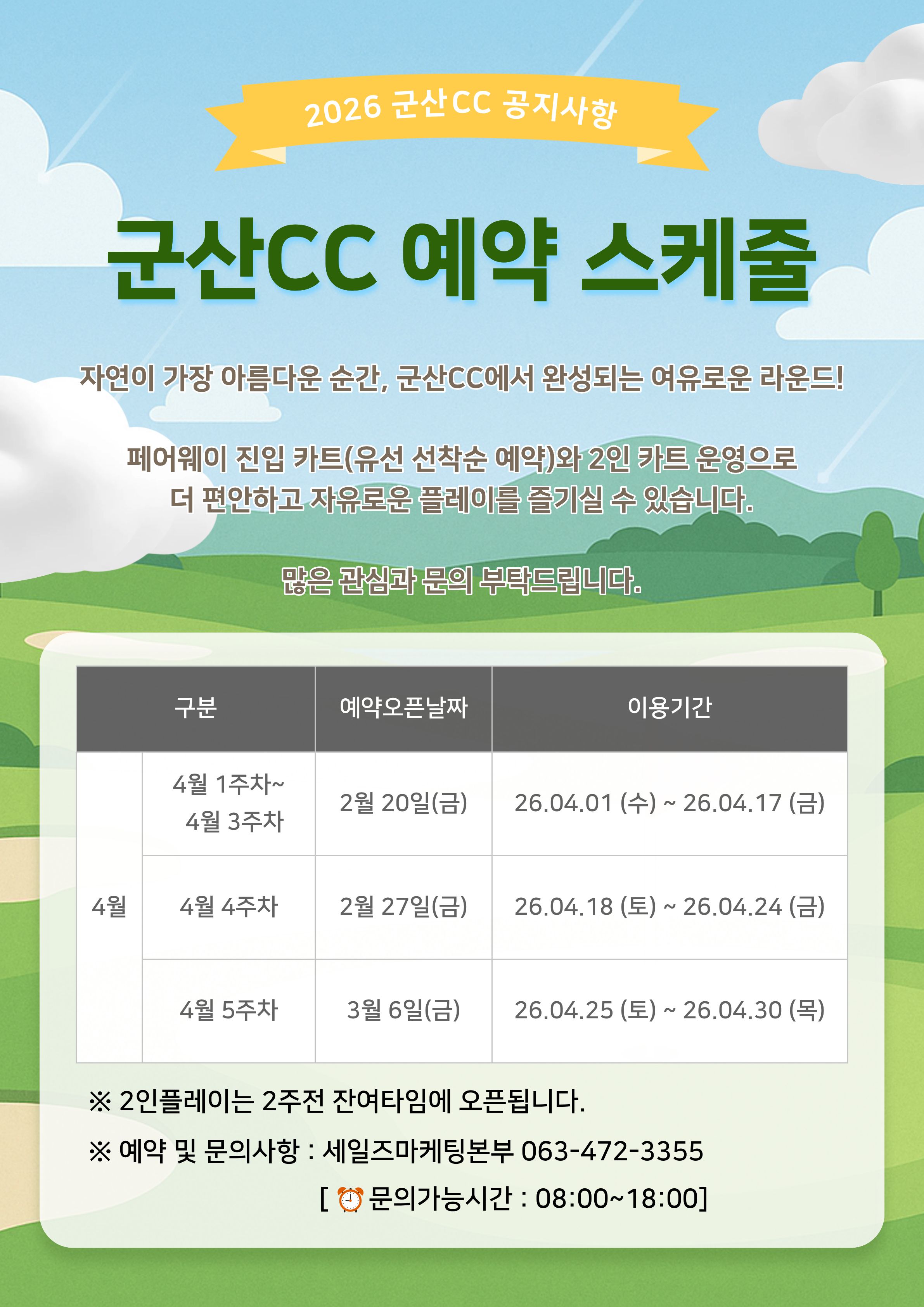 [공지사항] 2026 군산CC 4월 예약스케줄